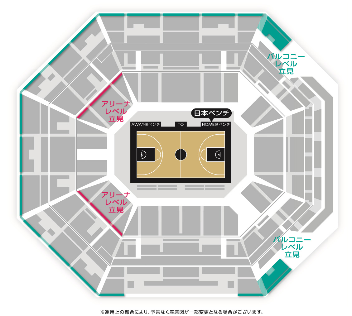 ※アリーナレベル立見エリアは、約1.2mのカウンター付き立見エリアです。身長の低い方やお子様は、視界をご確認のうえご購入ください。